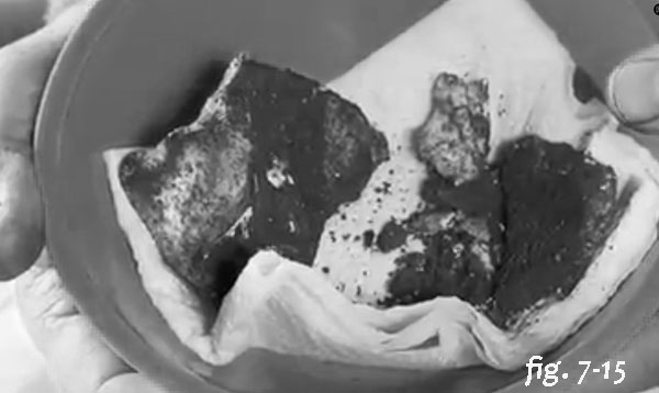 Figure 7-15 is a photo of Homo Naledi’s skull as portrayed on NOVA. This is all that was shown, so it must be surmised that that’s all there was. If an entire skull were found, it sure would have been shown and shown off; big time. So these skull fragments, and the two jaw fragments, and lots of plaster and imagination produced Homo naledi’s entire skull.