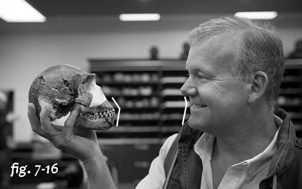 Figure 7-16 is a picture of Berger making goo-goo eyes with his hominid. He’s obviously joyful about the find. More importantly, check out the frontal contour of Lee’s own upper and