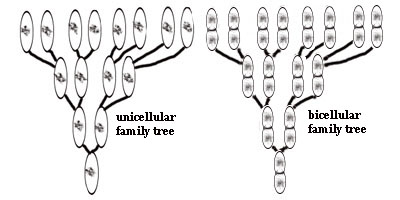 As I said, humans could have arisen from only one bicellular organism, just as is the case with the single cell scenario. We all had to arise from one single cell if evolution is truly the source of all of living nature; then a doubled up bicell, then a quadricell…….and on and on. If this scenario is true, think what might have happened to the history of the Earth and life on it if that one single bicell had died, for some reason. There would be no you, no me, no rats, no trees, no prunes, no cheese! In, looking at what the immense number of unicellular species that are still unicellular did as far as evolution goes, there should be zero multicellular life at all on Earth today anyway. A walk on the modern Earth should require a microscope to view life, just as it did 600 million years ago. Life should be invisible. There should be no visible multicellular species of note whatsoever. So again, we had to arise from one single cell that multiplied enormously. One single cell descendant of that single cell then had to become bicellular and procreate as a bicellular organism; not as two independent stuck together unicellular organisms. Only one of those bicellular cells could have been the common ancestor to all humans and all multicellular species. It could not have been two or thousands. It had to be only one. And, of the descendants of the bicellular organism, how ever many that may have been, only one single one of those could be a common ancestor of man and modern species. When four-celled organisms evolved, only one single quadricelled descendant of that single bicell then had to procreate as a quadricellular organism; not as four independent stuck together unicellular organisms. Only one of those quadricellular cells could have been the common ancestor to all humans and all multicellular species. It could not have been four or thousands. It had to be only one. And, of the descendants of the quadricellular organism, however many that may have been, only one single one of those could be a common ancestor of man and modern species. This scenario goes on and on, with one octocellular organism, one sixteen-celled organism………. In every case, only one could be an ancestor of modern man and any multicellular modern species. And because of this absurd scenario, evolution’s phylogenetic tree explodes again.