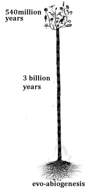 (1) Biochemicals: Evo-abiogenesis formed the very first biochemicals. The formation of biochemistry represents the roots of the tree.