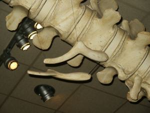 At left is a museum photo of a whale skeleton showing the spine.  The two “bent L” shaped bones are the bones that evolutionauts say are vestigial hind legs from Pakicitus and Indohyus, supposed whale precursors.  Evo-scientists say these bones correspond exactly to the hind legs of a furry quadruped.  Do they look like former leg bones?  If you have a great evo-imagination, they sure do.  Anything looks like anything if it proves evolution.  Note that these bones are completely internal.    No part of them has an external remnant whatsoever.  So the legs shrank, bent themselves into an “L”, fused the knee joint,  and moved themselves way inside of the body of the whale?  Also, there are several muscles that attach to these bones, hinting that these bones have a designed use in modern whales. They have a purpose and are not remnants of an evolutionary past. They actually are part of whale birthing apparatus. These two bones are a huge part of the “mountains of evidence” cited by evolutionauts for their fake science.  These “legs”, along with chicken teeth, are two of my favorite “whale of a tale” fables that evolutionauts feed young impressionable students.At left is the remains of a Pakicetus fossil.  Can you imagine assigning these bits of bones as the precursor to all whales?  What kind of science is this?  A few bones found in the dirt is for sure an early whale. The more I look at this science, the more amazing it gets.