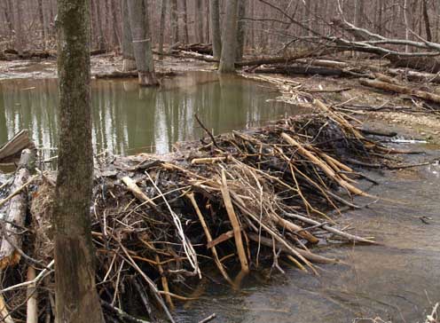 An interesting note on beaver dams: Beavers are most famous, and infamous, for their dam-building. They maintain their pond-habitat by reacting quickly to the sound of running water and damming it up with tree branches and mud. Early ecologists believed that this dam-building was an amazing feat of architectural planning, indicative of the beaver’s high intellect. This theory was questioned when a recording of running water was played in a field near a beaver pond. Despite the fact that it was on dry land, the beavers covered the tape player with branches and mud. The largest beaver dam is 2,790 ft (850 m) in length—more than half a mile long—and was discovered via satellite imagery in 2007.It is located on the southern edge of Wood Buffalo National Park in northern Alberta and is twice the width of the Hoover dam which spans 1,244 ft (379 m). (Wikipedia)