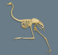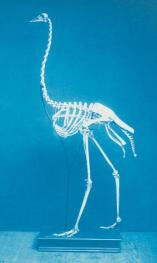 A note about Birds: Birds have completely unusual lung systems due to their high demand for oxygen during flight. They are made up of nine air sacks which fill with fresh air.  The air goes into the lung from the sacks when birds exhale.  These specialized lungs and their sacks need support from bird femurs, which are fixed.  Bird knees are buried within the soft feather/skin covering of the bird and cannot be seen. What looks like their lower leg (tibia/fibula) is part of their foot. What looks like our knee joint is their ankle.  Birds are “knee runners”.  Below are the skeletons of two non-flying birds, an emu (left) and an ostrich.  Even though they don’t fly, you can see how the femurs would be buried under their feather/skin.