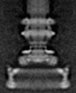 The eubacterial flagellum is an ion-powered rotary motor, anchored in the membranes surrounding the bacterial cell. (ME: Not mentioned: it has 10,000 rpm’s, and is reversing. Don’t want to make it seem too complicated so let’s avoid those astounding facts.) This schematic diagram (ME: Changed to electron microscopic image, left. Looks like it was designed by Boeing.) highlights the assembly process (ME: Assembly process? Evolution assembles motors? How naive for Miller to say this. How did evolution invent the motor in the first place, on an earth where no motors existed? How did the idea of a motor form?) of the bacterial flagellar filament and the cap-filament complex. OM, outer membrane; PG, peptidoglycan layer; IM, cytoplasmic membrane (From Yonekura et al 2000).