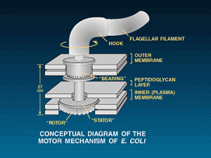 The utility of the bacterial flagellum is that it seems to rise above this “argument from ignorance.” (ME: Trite evo-speak again.) By asserting that it is a structure “in which the removal of an element would cause the whole system to cease functioning” (Behe 2002), the flagellum is presented as a “molecular machine” whose individual parts must have been specifically crafted to work as a unified assembly. The existence of such a multipart machine therefore provides genuine scientific proof of the actions of an intelligent designer.
